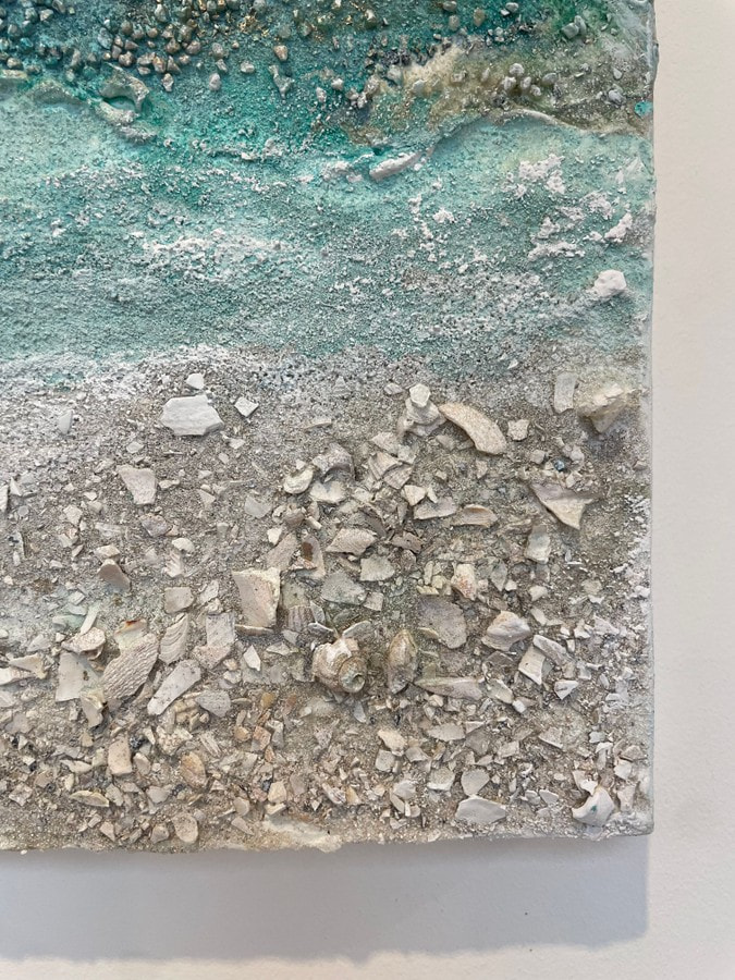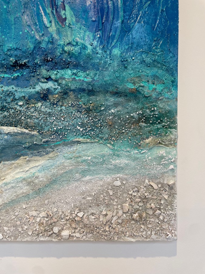 The coastline is in constant motion—eroding, shifting, transforming. Edge of Time captures the raw energy of the shore, where broken shells and crumbled chalk tell the story of cliffs lost to the tide. The chalk used in this piece was gathered from the fallen cliff between Saltdean and Telscombe, a place I’ve walked many times. Now, the erosion has made it nearly impossible to pass safely, the land continuing its slow collapse into the sea. This painting holds the fragility of these places within its layers—reminders of time, loss, and the force of nature at work.