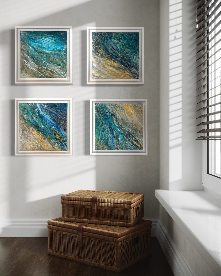 The interplay of blues, greens, and textures captures the fluidity of the experience, allowing each observer to embark on their unique journey of interpretation and contemplation.