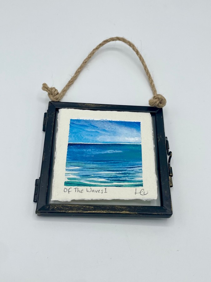 The sky over the sea holds a magic that makes anything seem achievable. My 'Coastal Miniatures' series reflects the dreamlike quality of clouds and sky merging at the horizon, embodying the possibilities that stretch beyond view. Painted on handmade cotton khadi rag paper with natural deckled edges, these works are beautifully framed in hanging metal frames.