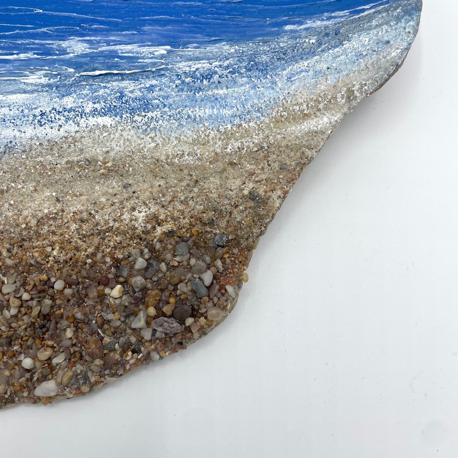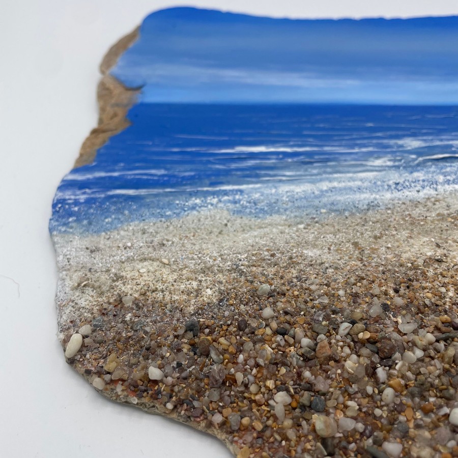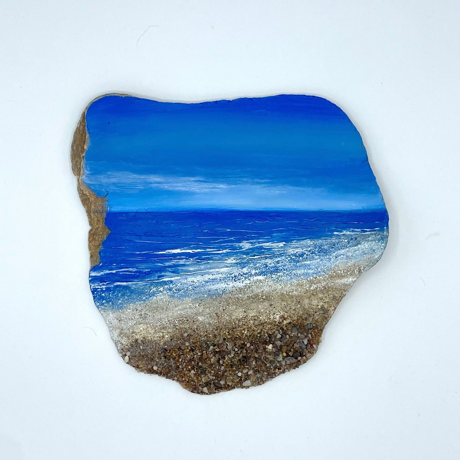 My daily dog walks on the East Sussex beaches often reveal shoreline treasures, especially at low tide after storms or spring tides. Amongst the seaweeds and shells, I find discarded fishing nets and plastic fragments, sometimes from faraway places. Seeing the overwhelming plastic pollution, I decided to repurpose these materials into my art, creating 'Plastic Seas' to reflect the potential future of our oceans if we don't change our behaviours. 60-90% of marine litter is made of plastic items which could take hundreds of years to break up. My goal is to turn these marine plastics into painted sea vignettes, blending beauty with a powerful message of hope and urgency. Through this process, I aim to inspire love and protection for our oceans, showcasing the potential for positive transformation despite environmental challenges.