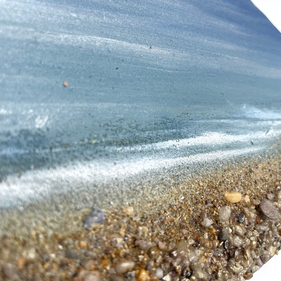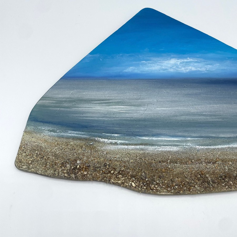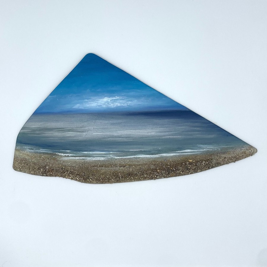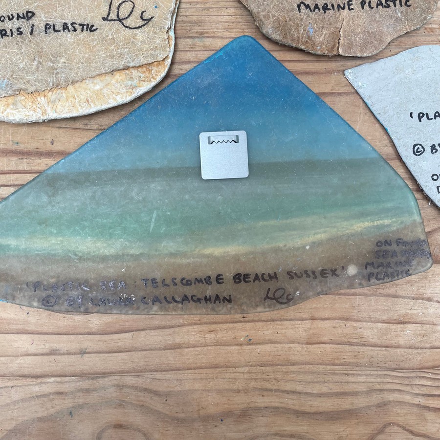 My daily dog walks on the East Sussex beaches often reveal shoreline treasures, especially at low tide after storms or spring tides. Amongst the seaweeds and shells, I find discarded fishing nets and plastic fragments, sometimes from faraway places. Seeing the overwhelming plastic pollution, I decided to repurpose these materials into my art, creating 'Plastic Seas' to reflect the potential future of our oceans if we don't change our behaviours. 60-90% of marine litter is made of plastic items which could take hundreds of years to break up. My goal is to turn these marine plastics into painted sea vignettes, blending beauty with a powerful message of hope and urgency. Through this process, I aim to inspire love and protection for our oceans, showcasing the potential for positive transformation despite environmental challenges.