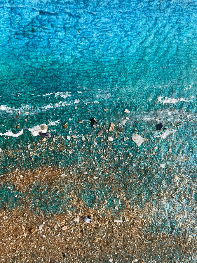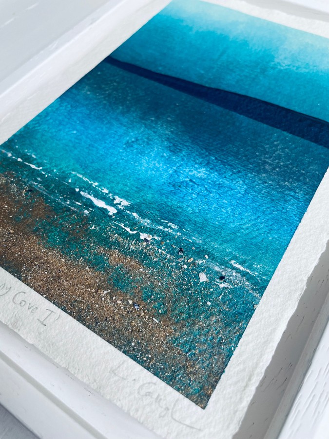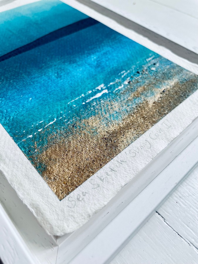 The use of acrylic paint creates a bold and vibrant look, with colours that pop and bring the scene to life. The colours are blended with a brayer and brush to create a sense of movement and depth, capturing the ebb and flow of the ocean.