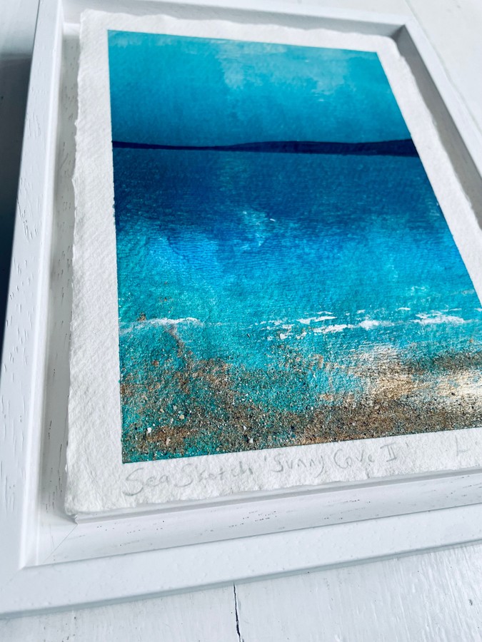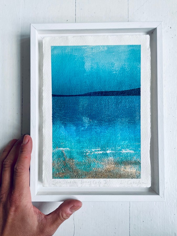 This Sea Sketch - Sunny Cove collection - is inspired by days spent at the sea, basking in the warmth of the sun and feeling the cool breeze on your skin. The khadi rag paper adds a natural, organic feel to the piece, complementing the beachy theme.