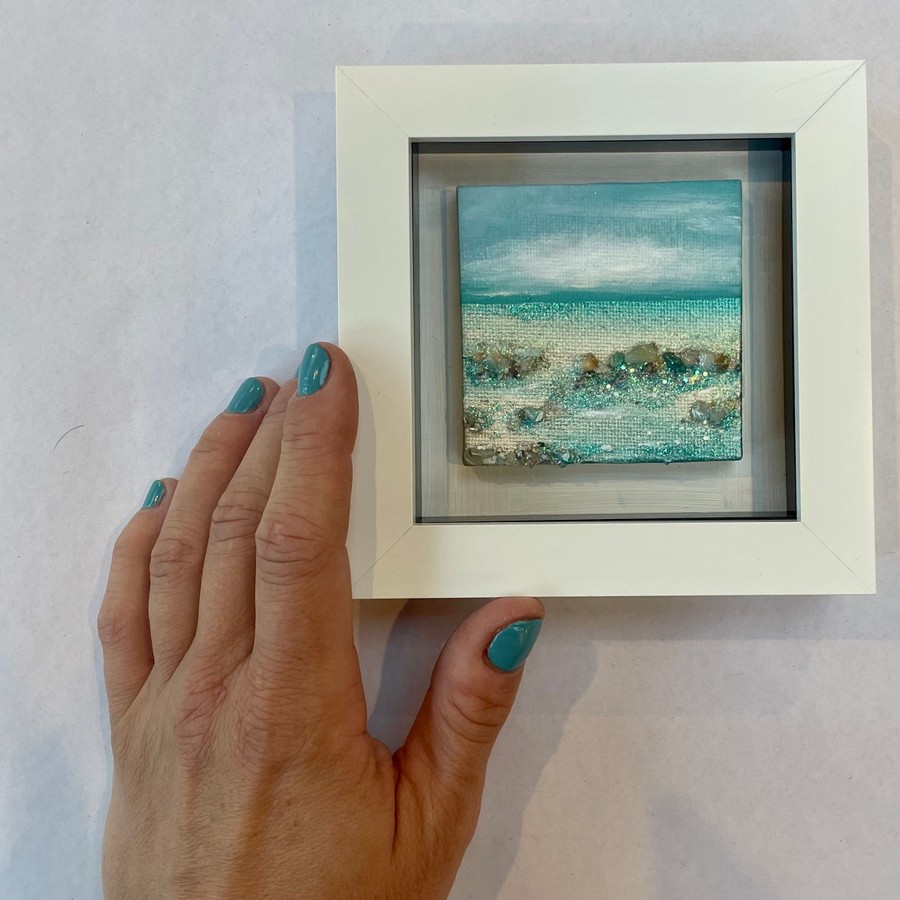 This miniature artwork exudes a mesmerizing aura, inviting you into the serene world of tranquil waters and eternal horizons. Perfectly suited for small spaces, it's a stunning portrayal of the sea's allure, promising to infuse any environment with a sense of calm and natural wonder. Would make a lovely little gift.