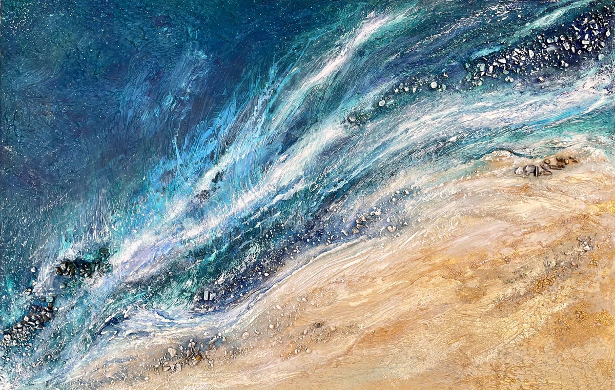 This painting draws inspiration from the groundbreaking imagery emerging from NASA’s new PACE satellite, which can observe global ocean biology and health from space. This painting captures an impression of the vibrant blooms of phytoplankton, tiny marine creatures crucial to ocean and climate health.