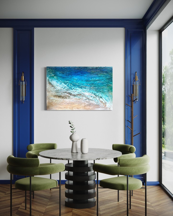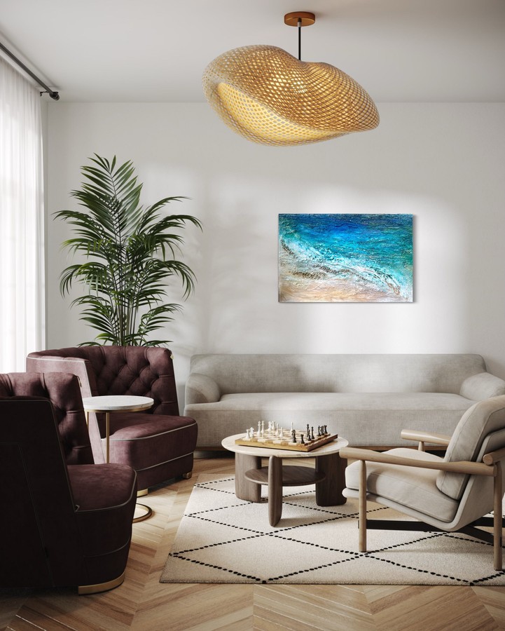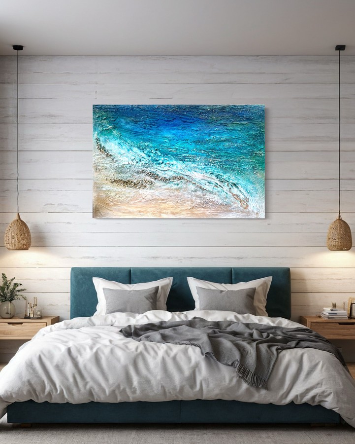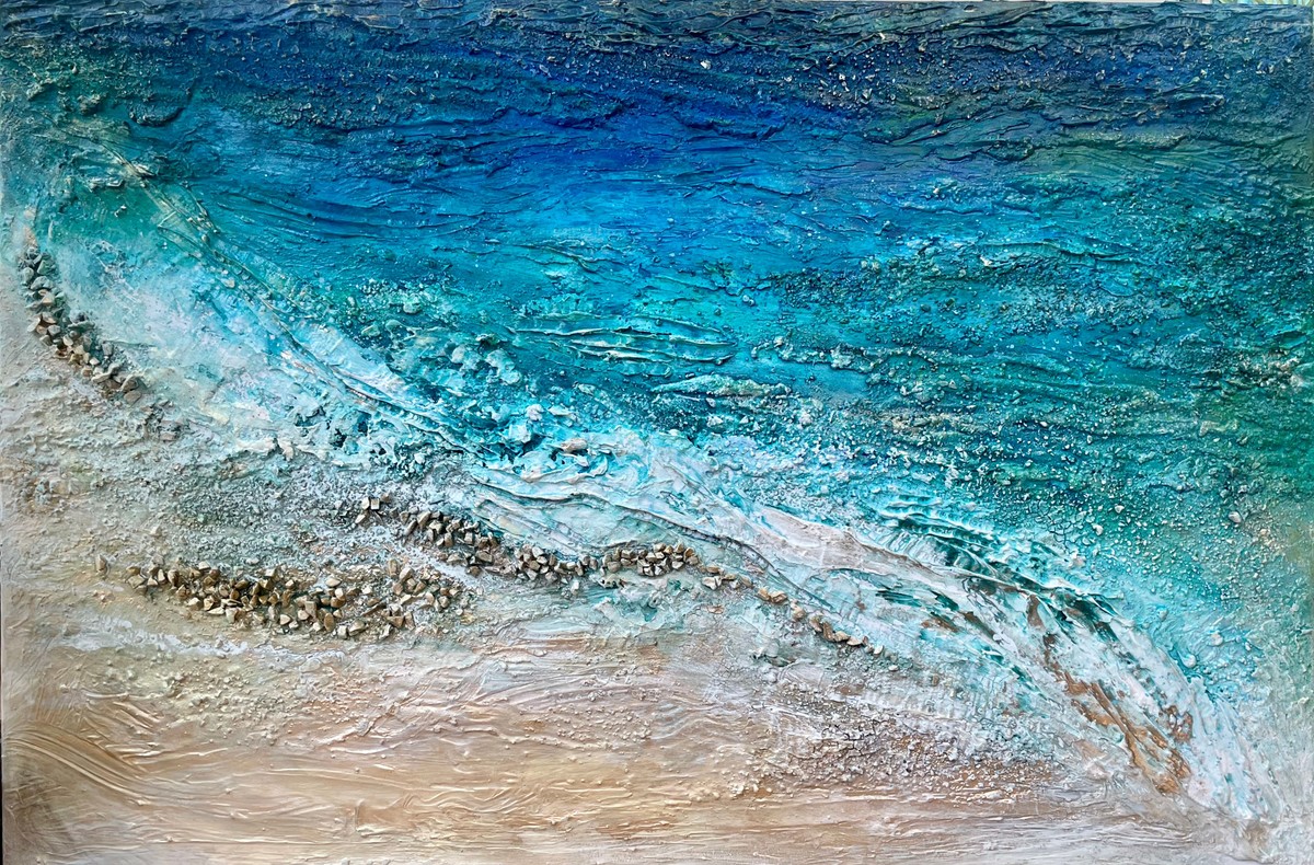 The painting underscores the interconnectedness of natural processes and the feminine force of our oceans and marine environments. Just as women face unique challenges and bear disproportionate burdens, so too do our coastal landscapes suffer under the manmade burden of climate change. This painting is a call to recognize and address the impacts of our actions on both the environment and the women who are often on the front lines of ecological advocacy. By highlighting the urgent need for environmental justice, this work advocates for a future where the nurturing qualities of both women and nature are honoured and protected.