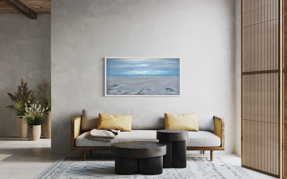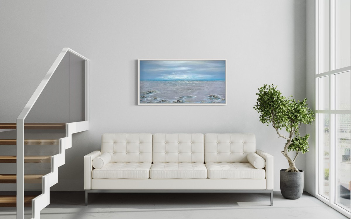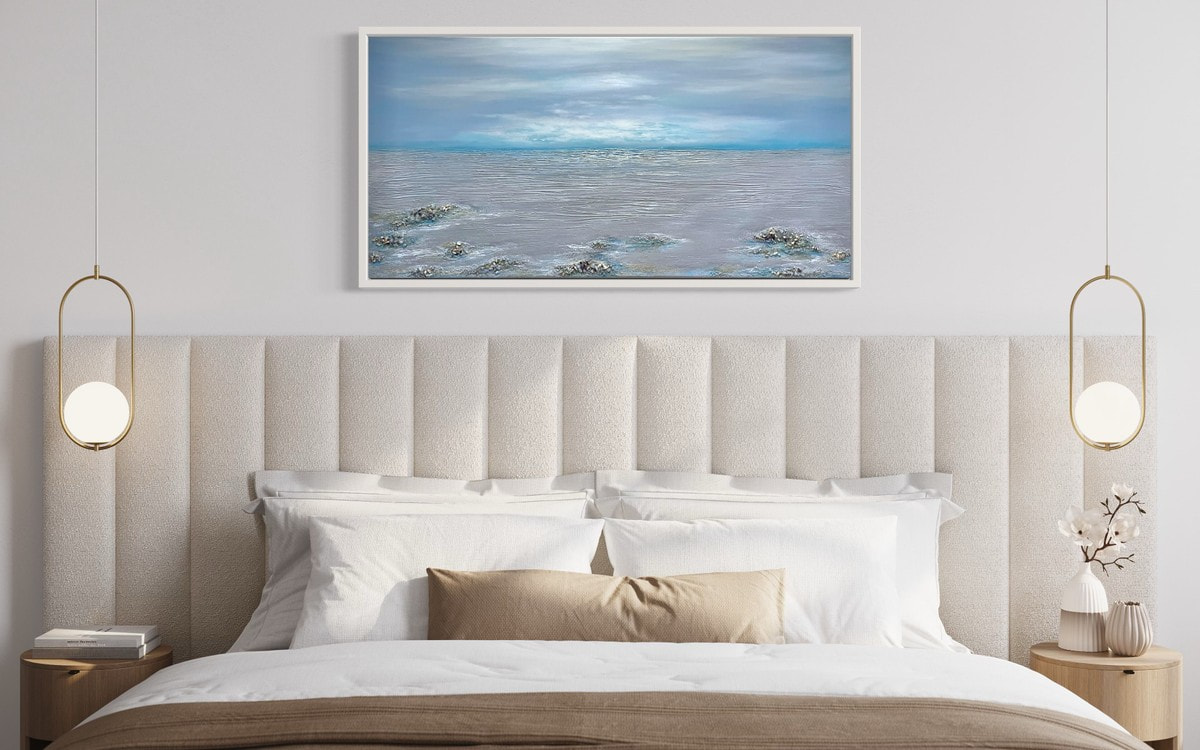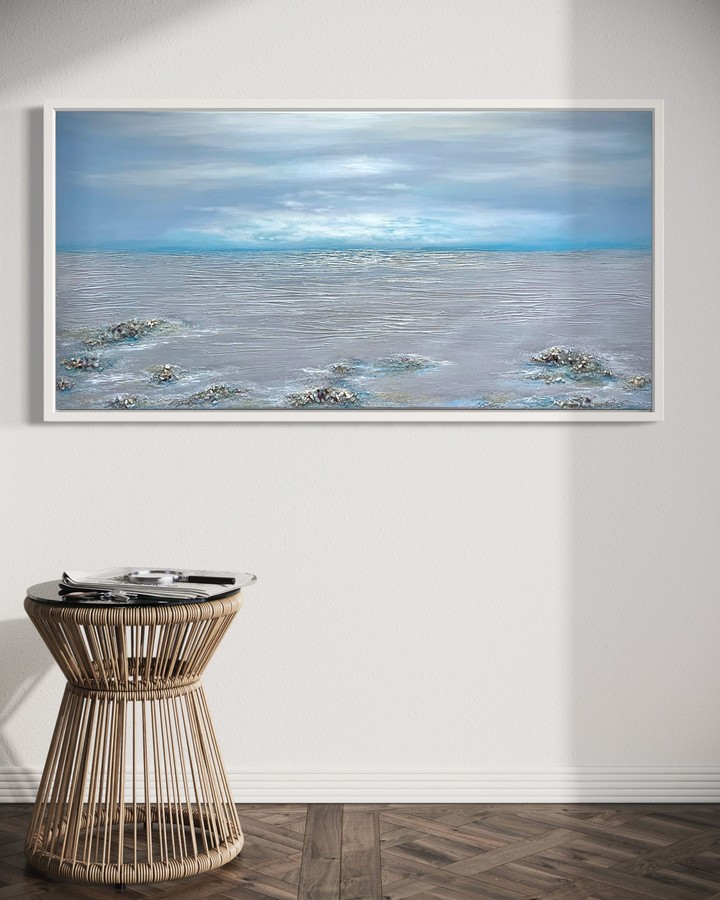 This would be a perfect painting for a bedroom or front room, especially if there is a good source of natural or artificial light, so that the painting will really be in its element. The reflective qualities of this painting absolutely live for the light!